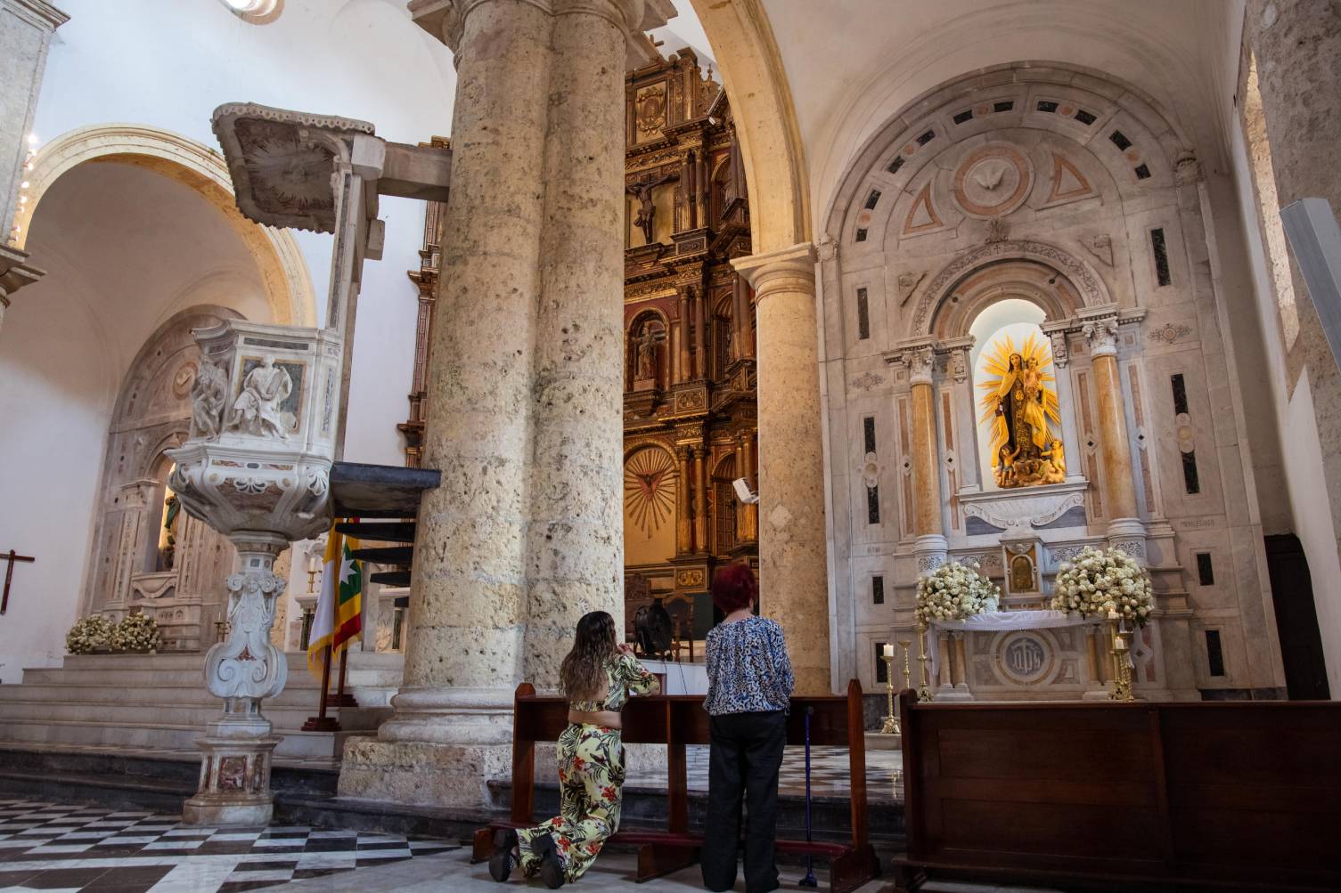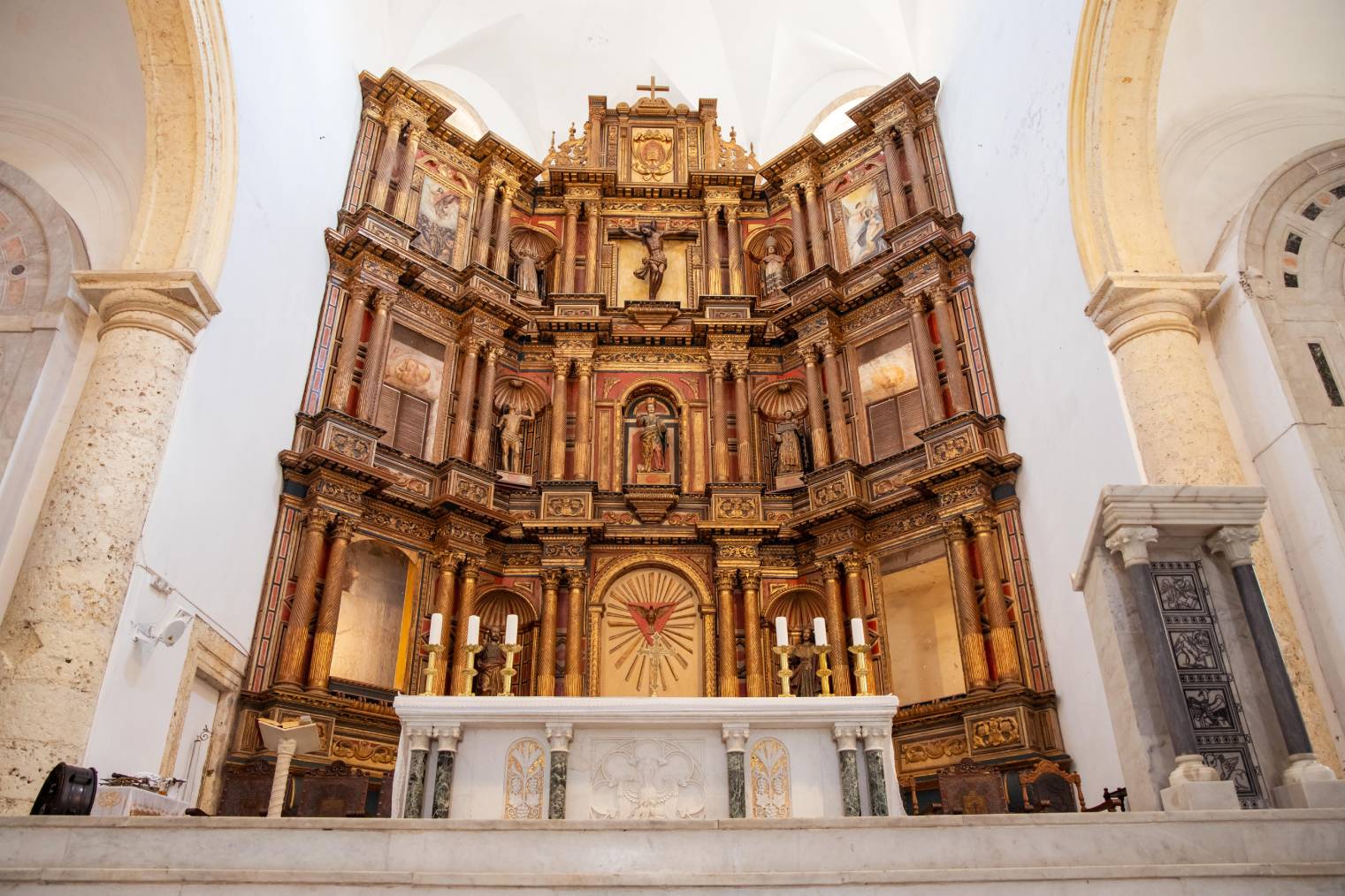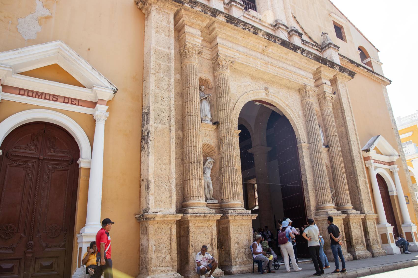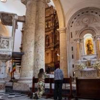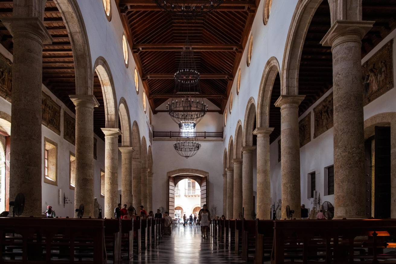 Llamada oficialmente Catedral Basílica Metropolitana de Santa Catalina de Alejandría, la construcción de este templo católico comenzó en 1577, en el lugar donde se levantaba una humilde iglesia de madera y paja. Sin embargo, no fue hasta ya entrado el siglo XVII (1612) cuando se pudo finalizar pues, en medio de ese proceso, en el año 1586, el templo fue parcialmente destruido por el pirata inglés Drake y sus hombres, en su invasión y saqueo a la ciudad, hecho que, además, originó la construcción de las murallas.