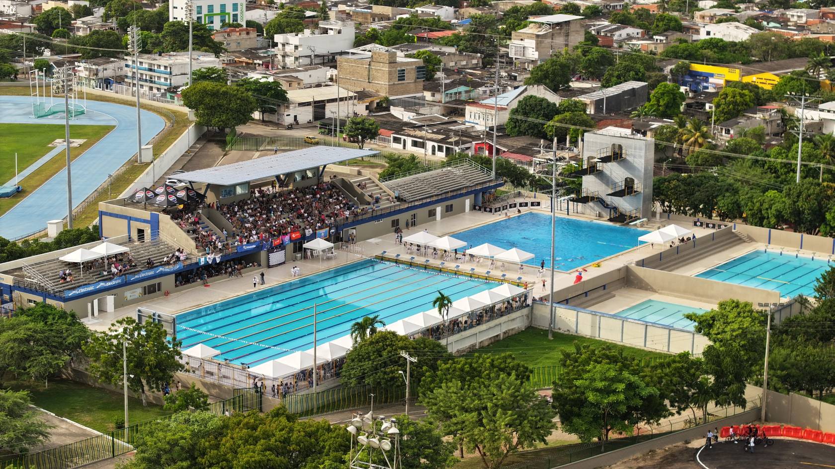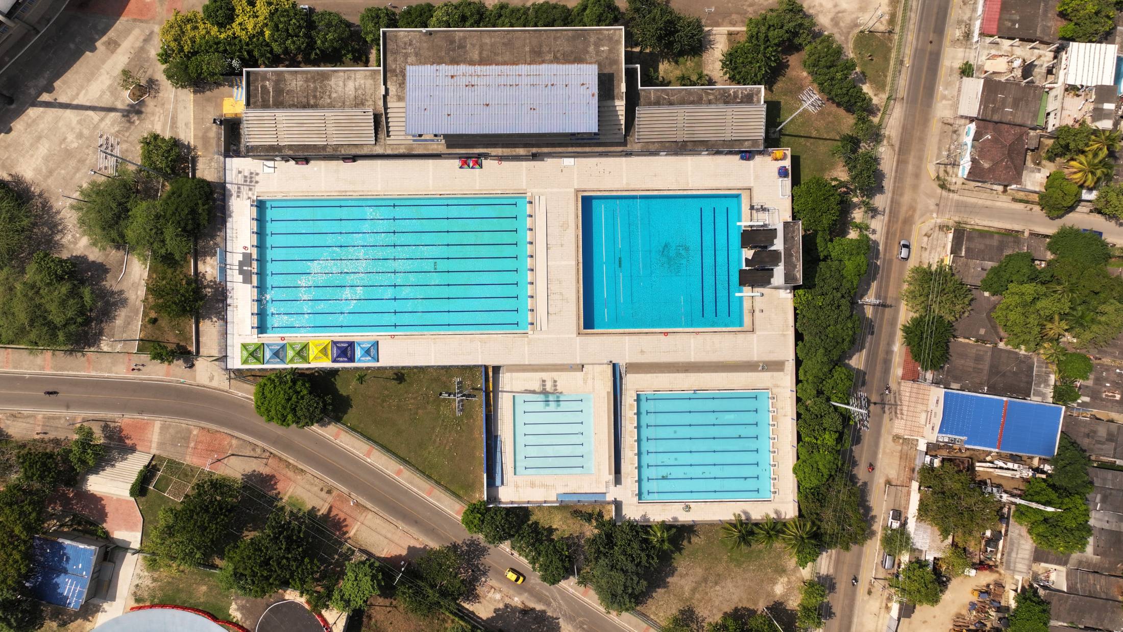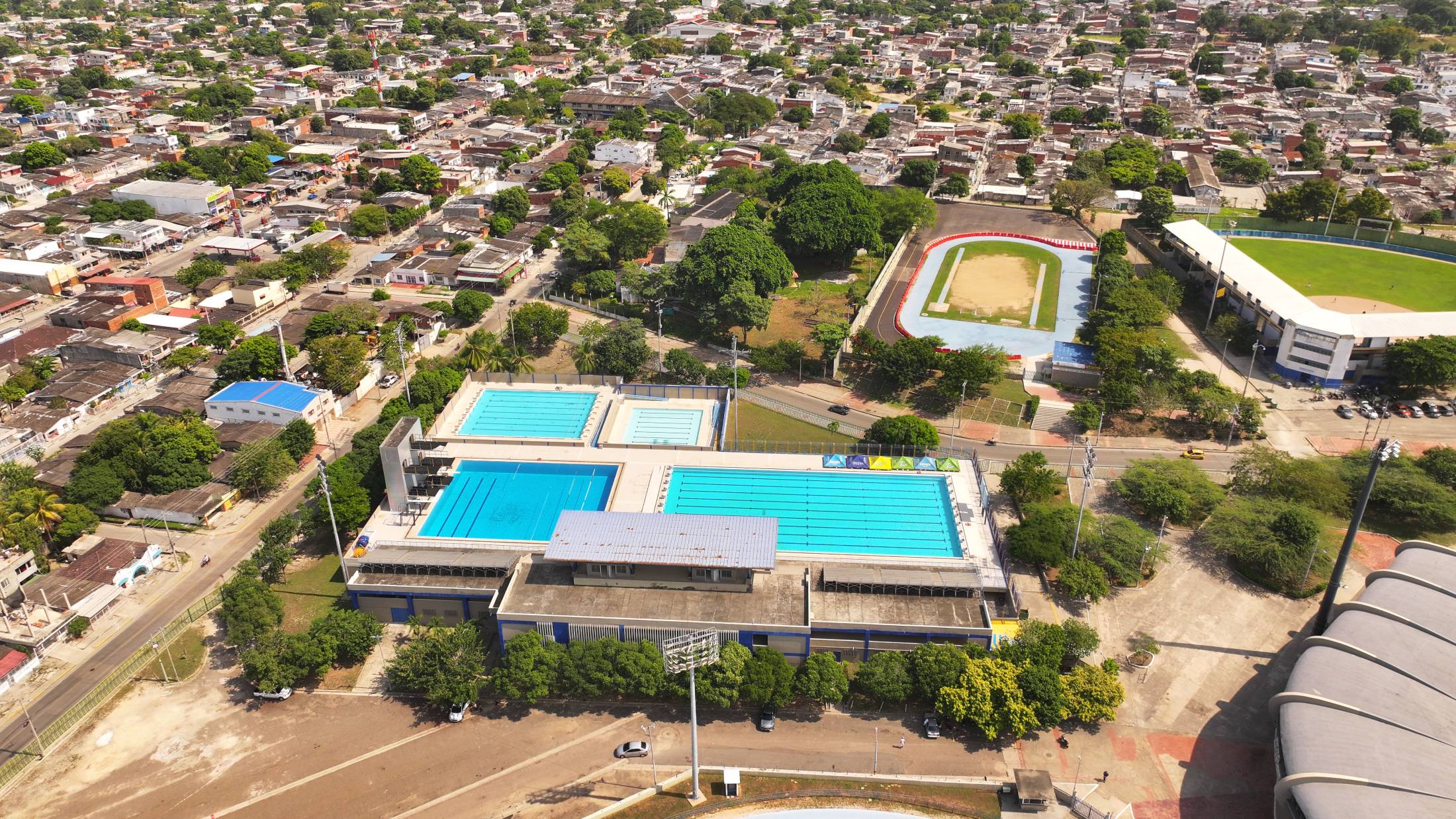Complejo acuático “Jaime González Johnson”. Sede de clubes de natación locales. Infraestructura de 10 carriles, pozo de clavado, dos piscinas de calentamiento.