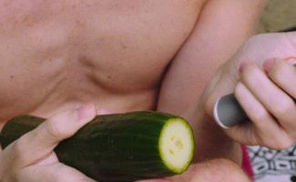 En Cucumber/Knife, Gustavo Vinagre nos sumerge en un juego de cuerpos, pieles y objetos en la orilla de un lago berlinés. Joana, una persona no binaria con vagina, y Xtopher, un hombre gay afeminado, se encuentran en una zona nudista y deciden explorar juntos el área de cancaneo, deslizándose entre el deseo, la performance y la sátira.